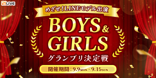 株式会社エムアンドティーティー(本社:沖縄県北谷町、代表取締役:井藤 三知子)が運営するエンターテイメント・ライブ配信アプリ【21LIVE(ニーイチライブ)】URL: https://21.live では9月9日(月)から9月15日(日)の1週間限定でライバー男女別のランキングを競う『BOYS & GIRLSグランプリ決定戦』を開催いたします。