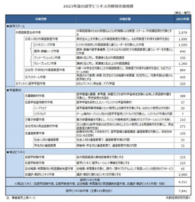 株式会社矢野経済研究所(代表取締役社長:水越孝)は、国内の外国語学習に関わるビジネスを調査し、参入企業動向、分野別の市場動向、将来展望を明らかにした。