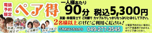 【川越店】ペア得キャンペーン! おひとり様90分 5,300円(税込)