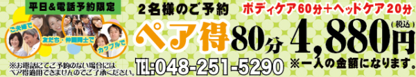 【川口店】ペア得キャンペーン! おひとり様80分 4,880円(税込)