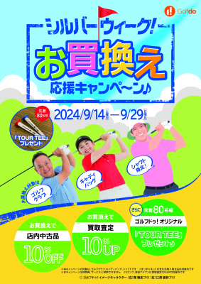株式会社ゴルフ・ドゥ(本社:さいたま市 代表取締役社長:佐久間功)は、「ゴルフドゥ!」24店舗において、秋のゴルフシーズンの幕開けを告げるシルバーウィークにあわせて「シルバーウィーク!お買換え応援キャンペーン」を、2024年9月14日(土)~9月29日(日)に開催します。