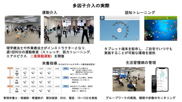 ・多因子プログラムの実践(運動、脳トレ、栄養管理、生活習慣病の管理)は、高齢者の認知機能(頭の働き)を向上させる効果があることが実証された。