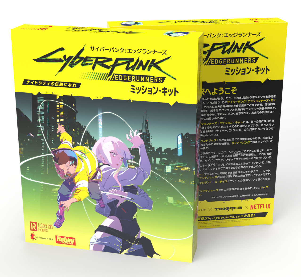 人気アニメ『サイバーパンク:エッジランナーズ』の世界を疑似体験できるテーブルトークRPGの入門用ボックス・セット。