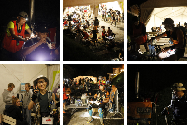 ツアー参加者約30名が出場したUTMB(171km)では、海外レースのサポート経験が豊富なメインスタッフの久保信人を中心に、各エイドにスタッフを配置。食事の用意や水の入れ替えなどを通じて選手とともにゴールを目指しました。暑さで有力選手も続々とリタイアする中、サポートを受けたランナーが次々とゴールし、歓喜の瞬間を迎えました。