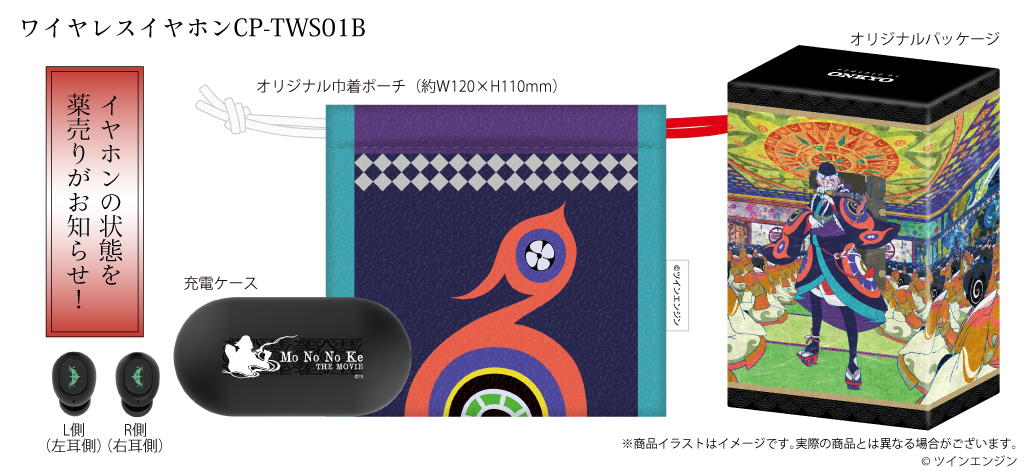 オンキヨー株式会社(所在地:大阪府大阪市、代表取締役社長:大朏 宗徳)は、完全ワイヤレスイヤホン「CP-TWS01B」と 「『劇場版モノノ怪』※1」とのボイス入りコラボレーションモデルを受注販売いたします。