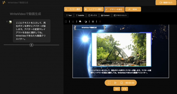 WriteVideoは、企業の動画制作を大幅に効率化する革新的なAI動画生成サービスです。特に、ナレーション動画に強みを持ち、従来社員が出演して行う解説や説明を、人間のように自然なAIキャラクターが代わりに行います。