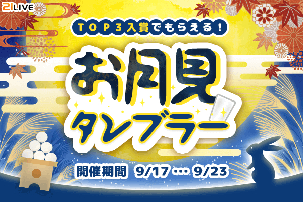 株式会社エムアンドティーティー(本社:沖縄県北谷町、代表取締役:井藤 三知子)が運営するエンターテイメント・ライブ配信アプリ【21LIVE(ニーイチライブ)】URL: https://21.live では、9月17日(火)から9/23(月)まで、お月見限定21LIVEオリジナルタンブラーを賭けたランキングイベントを開催いたします。