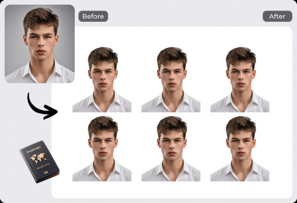 4. 迅速な処理: 従来のパスポート写真取得方法は時間がかかり面倒ですが、AI Easeのパスポート写真作成ツールは手間を節約し、数秒で処理済みの写真を提供します。