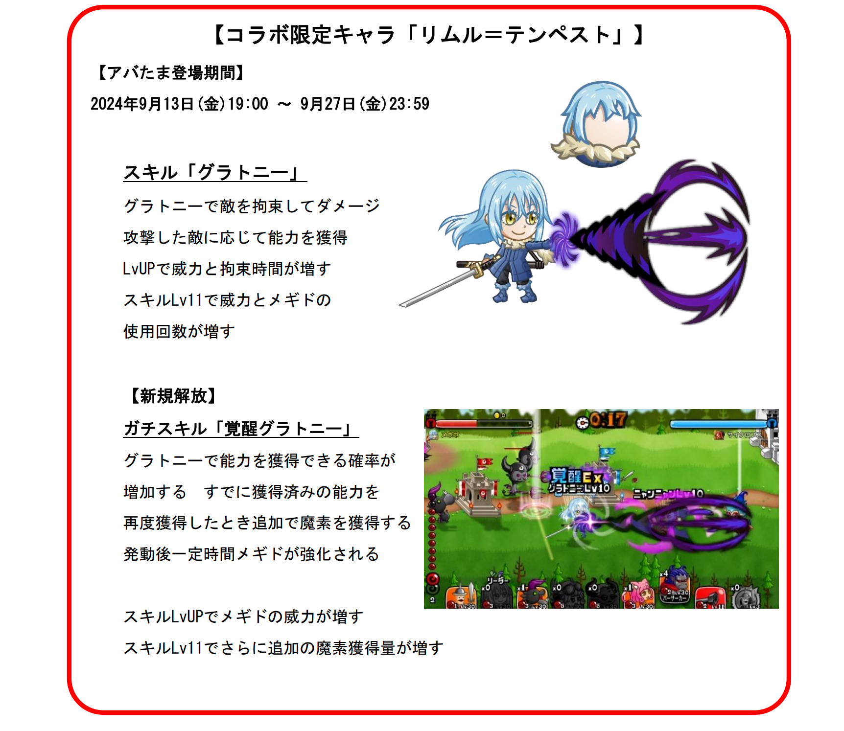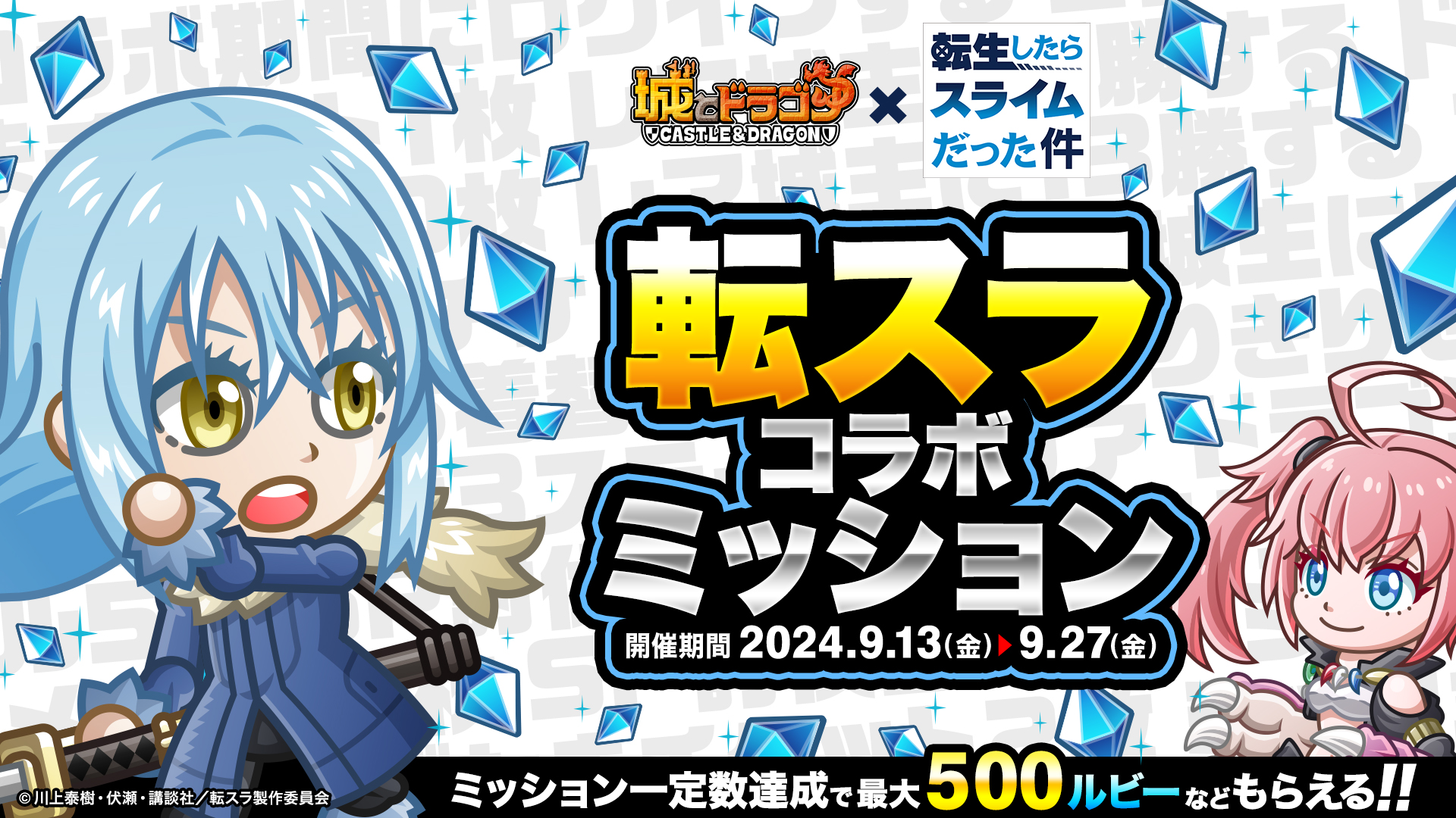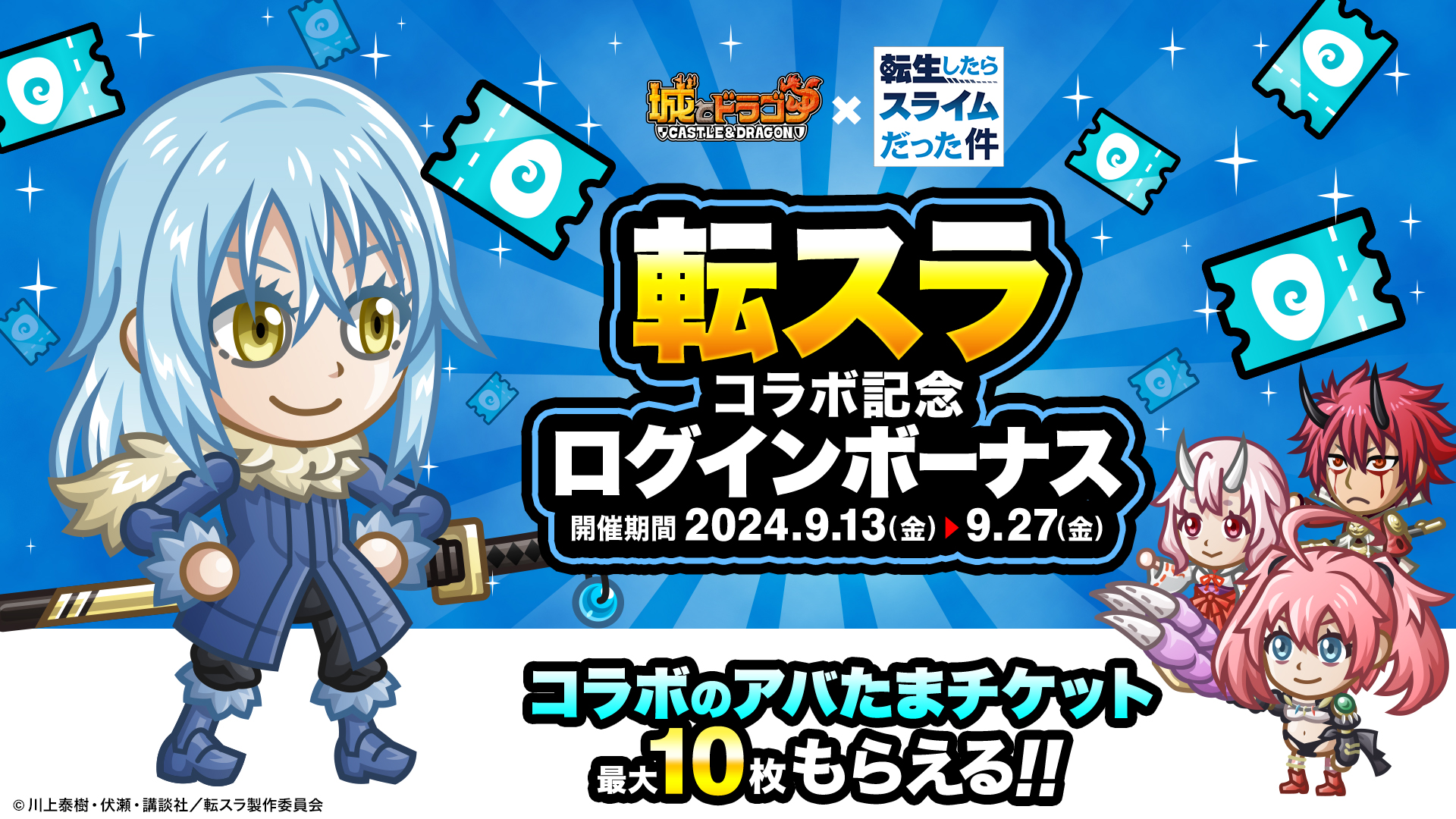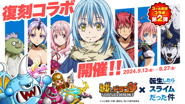 株式会社アソビズム(本社:東京都千代田区、代表取締役:大手智之)は、App Store・Google Playにて好評配信中の『城とドラゴン』で、TVアニメ『転生したらスライムだった件』との復刻コラボイベントを、2024年9月13日(金)より開催いたします。