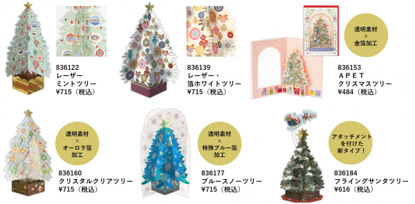 今年のテーマは「Many Merry Christmas Trees!」。クリスマスシーズンを象徴するツリーを中心に開発したほか、新機構の立体カードや和風カードの再拡充もポイントです。