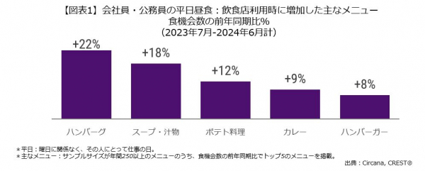 会社員の平日の昼食、成長率1位メニューは、ハンバーグで22%増