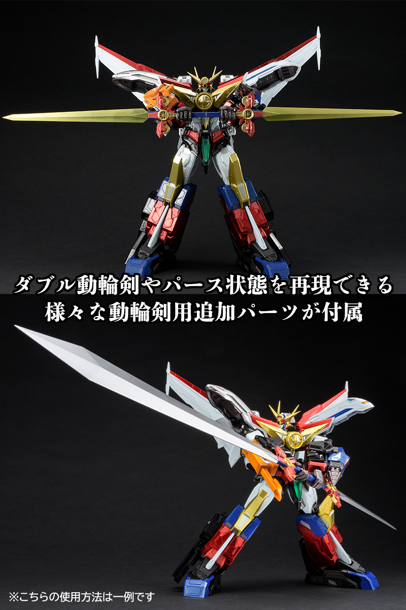 合体バンクシーンをイメージしたコックピット露出状態の頭部に、ワンボタンギミックでドリル部分が展開するギミックを搭載した差し替え用の胸部パーツや、動輪剣の様々な形態を再現できる追加パーツを封入。