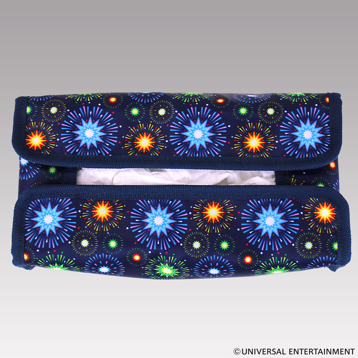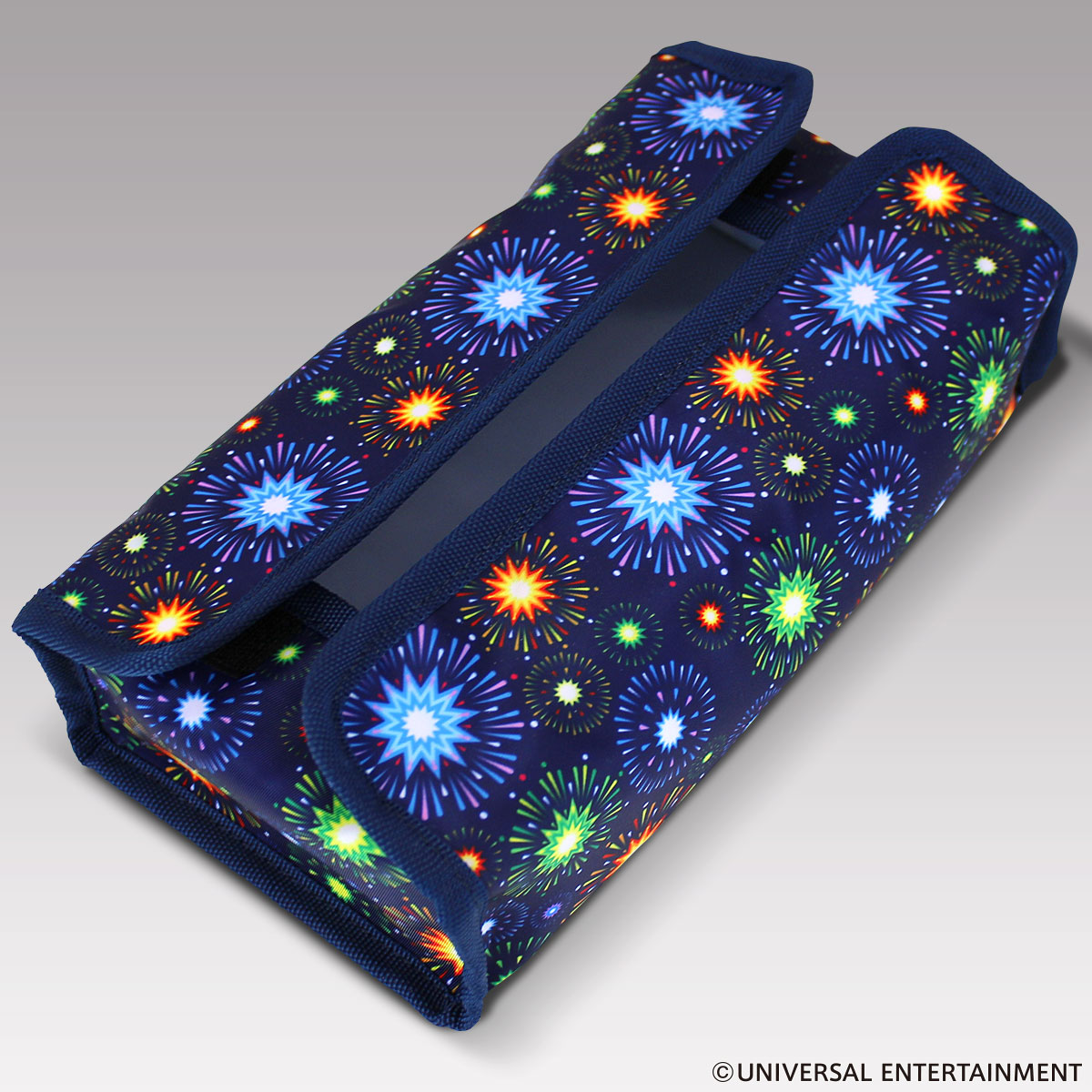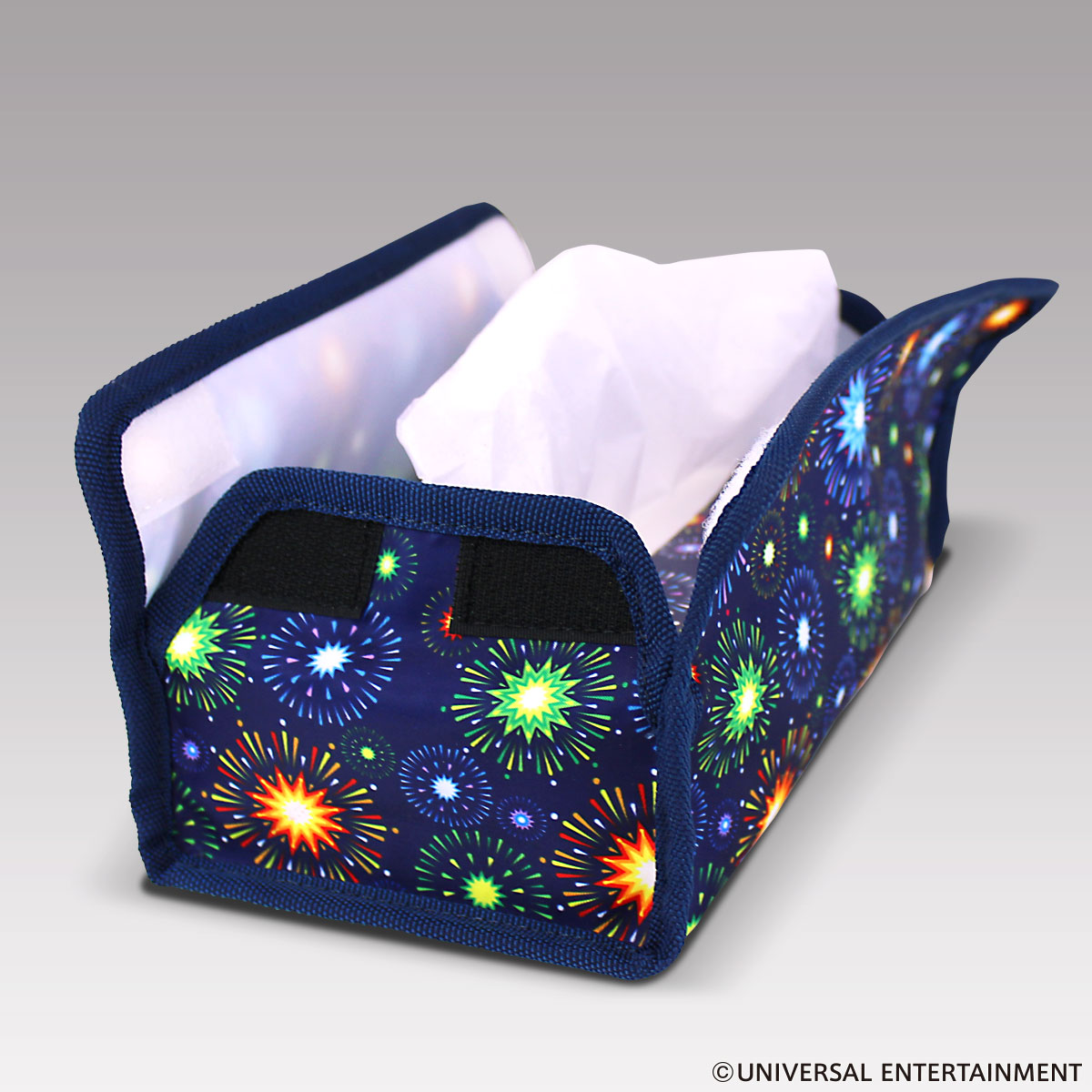 おなじみの花火柄をこれでもかと散りばめたティッシュケース。