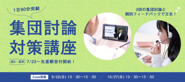 ※両日程、ポイント解説部分は共通ですが、より集団討論の経験を積みたい方はどちらもお申込みいただけます。