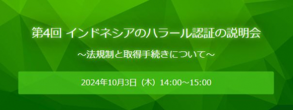 ハラール認証製品にご興味がある、あるいは将来ハラール認証を取得したいとお考えの皆様は、この機会にぜひ説明会にご参加ください。
