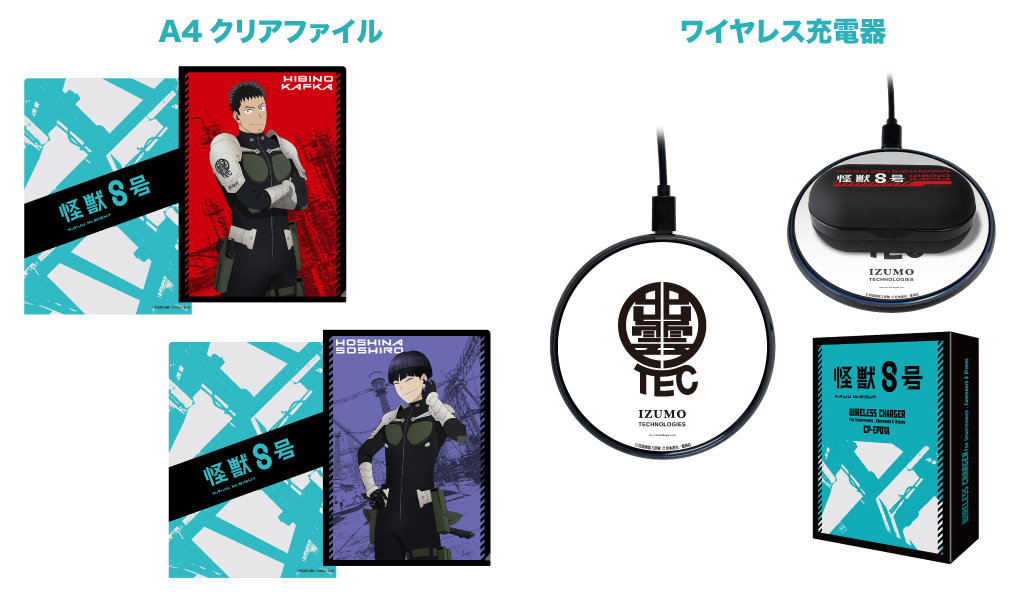 本オリジナルモデルは「日比野カフカ」モデルと「保科宗四郎」モデルの2種類、両ハウジングには「出雲テックス」のロゴを印刷、充電ケースの天面は作品とキャラクターをイメージしたオリジナルデザイン、ケース内面に「討伐庁」のロゴをデザインで作品のイメージを表現しました。