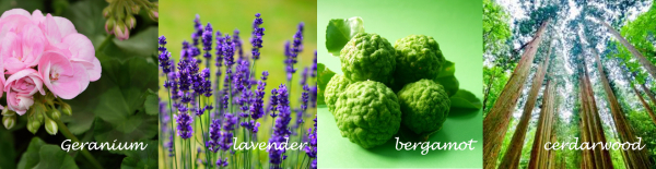 配合精油:ゼラニウム、ラベンダー、ベルガモット、シダーウッド