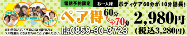 【米子米原店】ペア得キャンペーン! おひとり様70分 3,280円(税込)