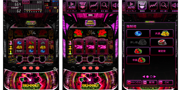 小役・ボーナスなどのフラグ設定ができる強制役や時短の高速オートモードなど、シミュレーターアプリならではの便利な機能を多数搭載!