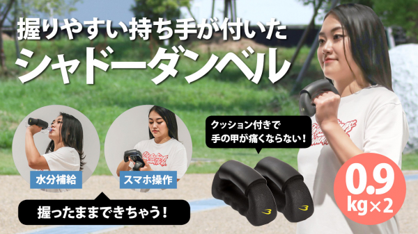BODYMAKERが新作「シャドーダンベルSP」を発売する。手の形をした溝付きハンドルのデザインが特徴で、快適なグリップが実現できます。ボクシングトレーニングはもちろん、ランニング、ウォーキング、ジョギング、ダンベル体操、エクササイズワークなどでも使用できます。コンパクトなサイズで、おうちトレーニングにも最適です。スポーツやトレーニングで負荷を加えることで筋力アップも期待できます。またスポーツのための筋力アップ、ケガの予防やリハビリなどにご利用いただけます。握力に自信がなくても握りやすい形状です。手触りの良いPVC素材なので手にフィットしやすく滑りにくく、しっかり握ることで握力の強化が期待できます。柔らかな素材を使用しているので、リビングなどの床にもやさしいダンベルです。もちろん程よい重さで男女兼用です。「シャドーダンベルSP」ついに発売!9月26日(木)まず、応援購入サイト「Makuake」出店からスタートします。