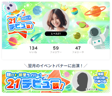 10月3日(木)からは新人ライバーイベント『輝け新星ライバー!21デビュー戦!』が開催!期間中に獲得したギフト数でランキングを決定します。