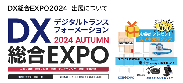 マーケティング支援のエコノス株式会社(所在地:大阪市中央区、代表取締役:野畑博央、以下:エコノス)は、2024年10月1日(火)から3日(木)にかけて、東京ビッグサイトにて開催されるDX 総合EXPO 2024秋 東京に出展いたします。