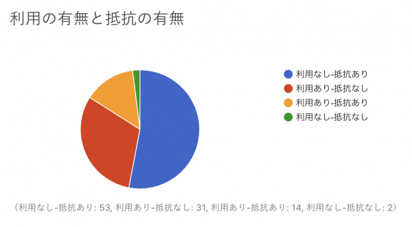 利用の有無と、抵抗の有無の回答を合わせて分析したところ、「利用なし-抵抗あり」が53%と過半数を超えていました。