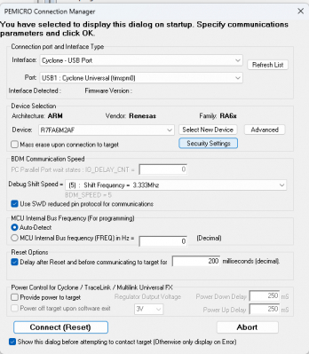 PEmicroのツールは、Renesas ARMプロセッサをサポートするOCD/シリアルプログラマーID設定レジスタ(OSIS)でのIDコード保護を利用できるようになりました。開発者は、4つの32ビットワードをOSISレジスタに書き込み、IDコードビット[127]と[126]で発行されるセキュリティレベルを示します。