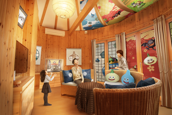 「GRAND CHARIOT 北斗七星135°」の一棟を、人気ゲーム「ドラゴンクエスト」シリーズをテーマに装飾し、同作品の世界観を〈和〉の演出で楽しむことができる