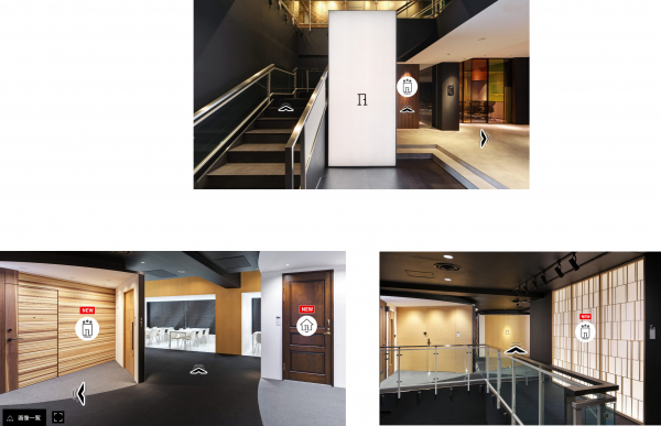 日本的感性を象徴する障子をアレンジした面発光障子や、主に茶室で使われる伝統的和建具である躙戸(にじりど)、太鼓貼り襖(たいこばりふすま)を新たに展示。SDGsの観点から製造過程で発生する切り落とし材を再利用した木製防火ドアなど、持続可能な社会への取り組みもテーマとなってしております。バーチャルショールームはその一環として多様性を受け入れ、移動が困難な方や対面が苦手なお客様など、気軽に当社の展示商品をご覧いただけるようになっております。また、リアルな空間再現をしていますので、館内を回遊しながら各ポイントをクリックすることで、商品のスペックや詳細などの確認も可能となっております。