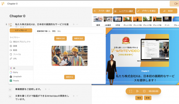 ユーザーはWriteVideo内に追加されたStable Diffusionの生成機能を用いて、独自の画像や動画を生成し、これらをWriteVideo内の動画パーツとして活用できます。これにより、よりカスタマイズされた研修コンテンツを作成することが可能です。
