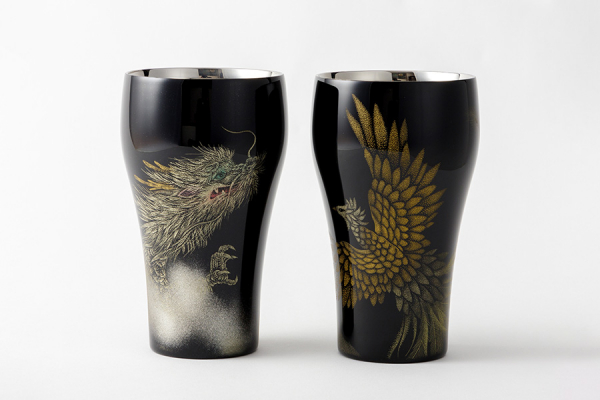 燕金属のタンブラーに、越前漆器を代表する沈金師や蒔絵師が思い思いに絵付けしました。タンブラーは二重構造になっており、保冷・保温ともにご利用いただけます。匠の絵技の饗宴をお楽しみいただけます。