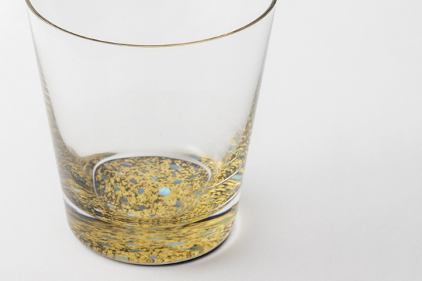 グラスの底面に越前塗の加飾技術を用いて小さな螺鈿を散りばめ、金箔砂子を蒔いた「銀河」シリーズ。万華鏡を覗き込んだような、グラスの底に浮かぶ銀河の世界が、優美でおしゃれな時間を演出してくれます。