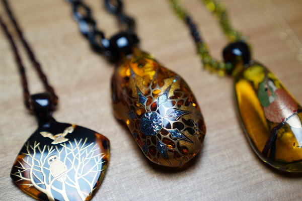うるしアートはりやでは、伝統的な蒔絵技法を駆使した茶道具や香合から、モダンなアクセサリー、現代の暮らしに寄り添うインテリア小物まで、トレンドを意識した蒔絵の新たな可能性を、それぞれの個性により生み出しています。