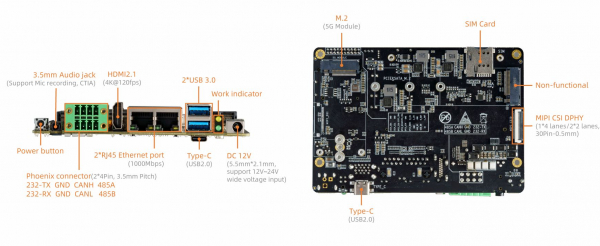 高度な画像処理能力: Core-3576JD4は、16メガピクセルISPを搭載しており、HDR(最大120dB)、低照度ノイズリダクション、RGB-IRセンサーをサポートします。AI-ISP技術による高品質な画像処理に対応し、マルチチャンネルMIPI-CSI入力に対応します。