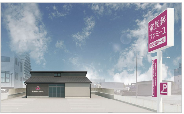 家族葬のファミーユは2022年に安城市初出店(「ファミーユ安城中央」)し、その後も2023年に「ファミーユ安城古井」、今年2月に「ファミーユ安城本館」と着実に出店を続け、当ホールで4店舗目となります。
