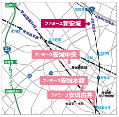 (地図)安城市内では4店舗の展開となるファミーユホール