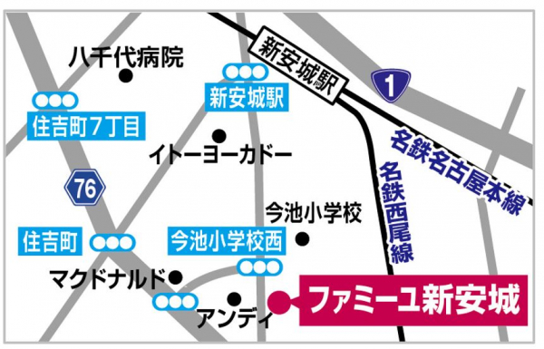 アクセス:<電車> 名古屋鉄道 名古屋本線「新安城駅」から徒歩約10分(車で約2分)