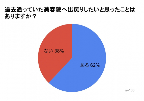 「過去通っていた美容院へ出戻りしたいと思ったことはありますか?」の質問では、『ある』が62%、『ない』が38%という結果となりました。