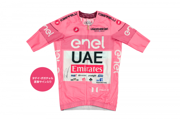 ロードレース界最速、最強の男 タデイ・ポガチャルが、トリプルクラウンの第一歩として獲得したジロ・デ・イタリアでの勝利を示す UAEチーム・エミレーツデザインの特別なジャージです。さらにポガチャル直筆サイン入りは、世界でも限られた数しかなくとても貴重なポガチャルグッズです。