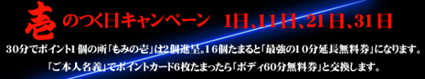 今回「もみの匠小田原店」では 1のつく日キャンペーンを新たに打ち出しました。