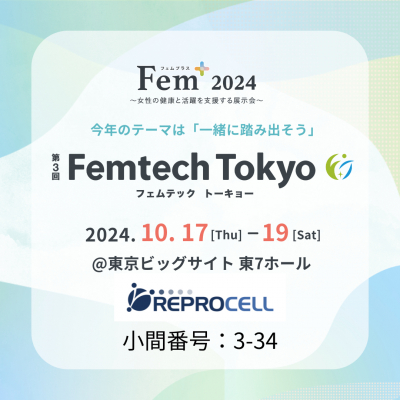 株式会社リプロセル(以下、当社)は、2024年10月17日(木)~19日(土)に開催される、Femtech Tokyo(フェムテックトーキョー)にてブースを出展いたしますのでお知らせいたします。