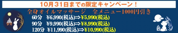 【池袋店】期間限定のオイルマッサージ値引きキャンペーン 全身オイルマッサージが全て1000円引き