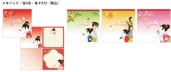 そんな誰もが知る小梅シリーズが、日頃のコミュニケーションをお手伝いするステーショナリーコレクションになりました。ステーショナリーのデザインには主要キャラクターである小梅ちゃんを中心に、初恋相手である真(まこと)さんや従姉妹たちも登場。 「あまずっぱい、恋ずっぱい、初恋の味。」そんな世界観を存分にお楽しみいただけるコレクションに仕上げています。