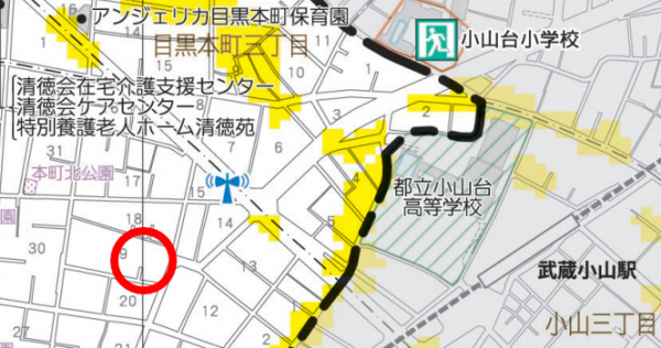また、武蔵小山周辺は品川区・目黒区作成のハザードマップにて目黒川の氾濫や現行の想定最大規模降雨である総雨量690mmまでの大雨の影響が無いとされ、水害にも強い地域です。