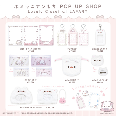 今回のPOP UP SHOPのテーマは「Lovely Closet」。おめかししたポメラニアンもち達を作者のmalが本催事用に描き下ろし。描き下ろしイラストを使った新商品やぬいぐるみ、Z世代女子に人気のブランド「LAFARY」とコラボした推し活グッズも多数発売!