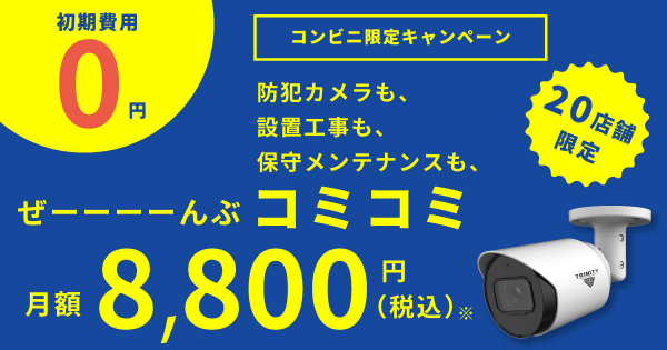 ▼【コンビニ限定キャンペーン】初期費用0円、月額8,800円で高品質の業務用防犯カメラが導入できる