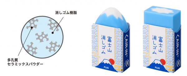 多孔質セラミックスパウダーが無数のカドを生み出し、“いつもカドで消すような軽い消し心地”を実現。消しゴムの粒子が黒鉛粒子を包みこんで、文字をきれいに消します。