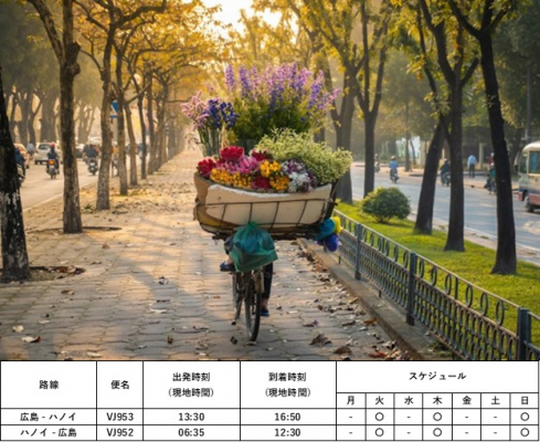 (東京, 2024年10月11日) - ベトジェットは2024年11月19日(火)より広島 - ハノイ線を増便することをお知らせします。これにより、日本 - ベトナム間の旅行需要増加へ対応できるようになり、両国の旅行者により柔軟な旅程を組んでいただけるようになります。