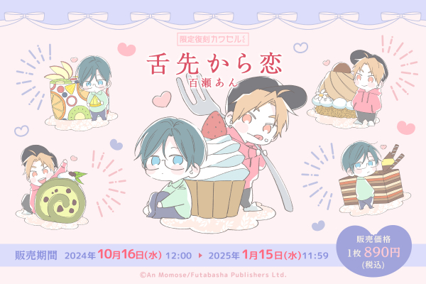 チルシェコミックスの百瀬あん先生の作品「舌先から恋」のオンラインくじ「カワセルくじ」が【限定復刻】しました。